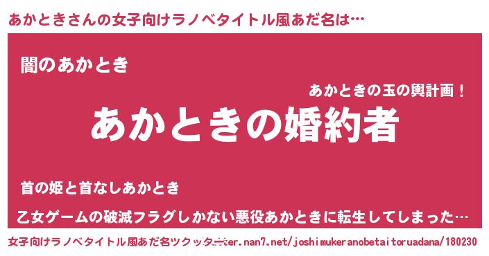 | 胡散臭い通販商品みたいなあだ名 | 『運命の人と巡り会える高級そうな絵画…その名も「あかとき」』 |