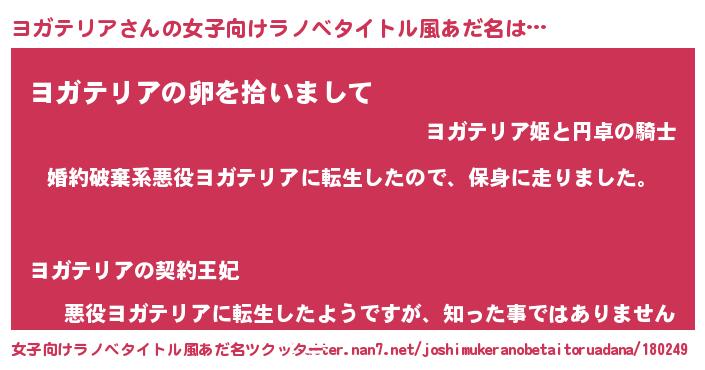 | 男性向けラノベタイトル風あだ名 | 『ヨガテリアスレイヤー』 |