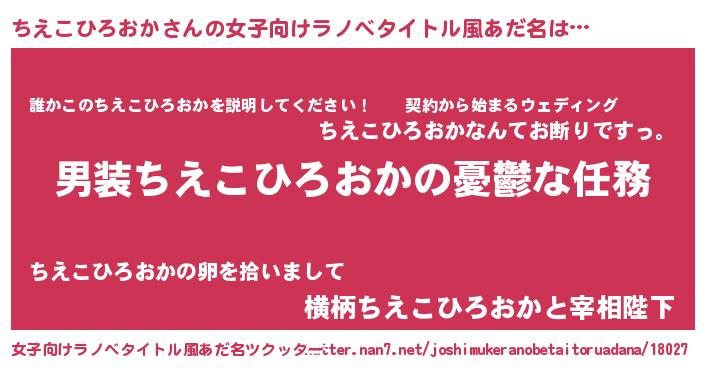 | 男性向けラノベタイトル風あだ名 | 『うちのちえこひろおかが世界を掌握している!』 |