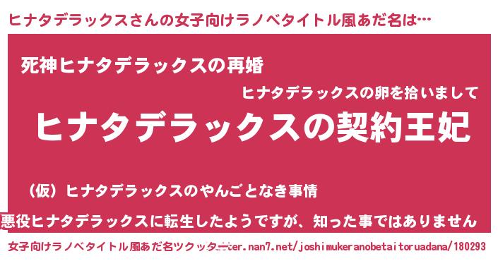 | 胡散臭い通販商品みたいなあだ名 | 『来世でも幸せになれる健康食品…その名も「ヒナタデラックス」』 |