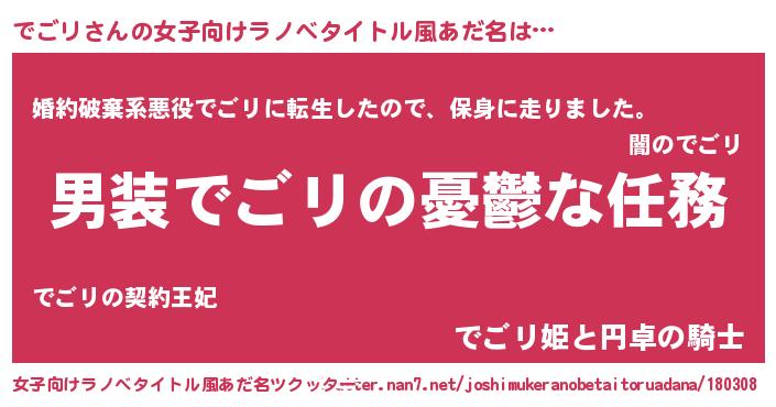 | 胡散臭い通販商品みたいなあだ名 | 『億万長者になれる霊験あらたかなお札…その名も「でごリ」』 |