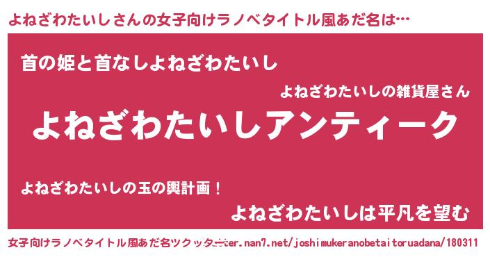 | 意味不明あだ名 | 『自称よねざわたいし』 |