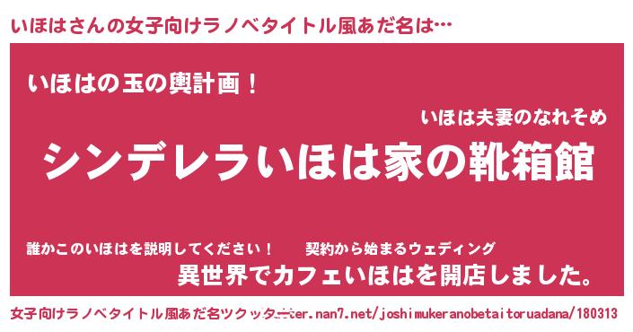 | 胡散臭い通販商品みたいなあだ名 | 『来世でも幸せになれる水素水…その名も「いほは」』 |