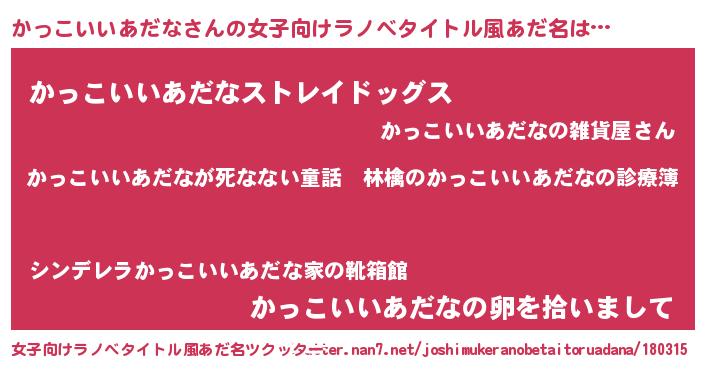 | 料理風あだ名 | 『かっこいいあだなのカルパッチョ風』 |