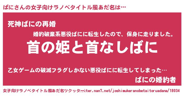 | 男性向けラノベタイトル風あだ名 | 『はたらくばにさま!』 |