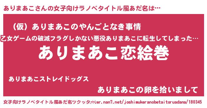 | ヒーロー風カッコイイあだ名 | 『愛の使者ありまあこ』『幻影騎士アリ』 |