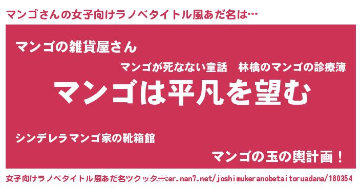 | 男性向けラノベタイトル風あだ名 | 『ダンジョンにマンゴを求めるのは間違っているだろうか』 |
