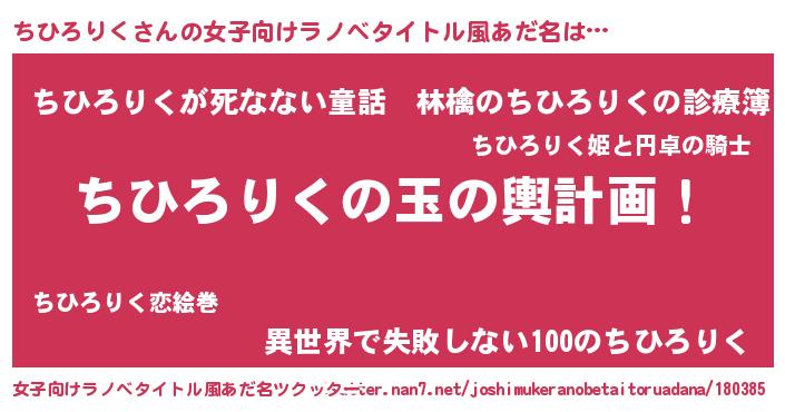 | 胡散臭い通販商品みたいなあだ名 | 『あなたにだけ特別に提供する100年もののヴィンテージワイン…その名も「ちひろりく」』 |