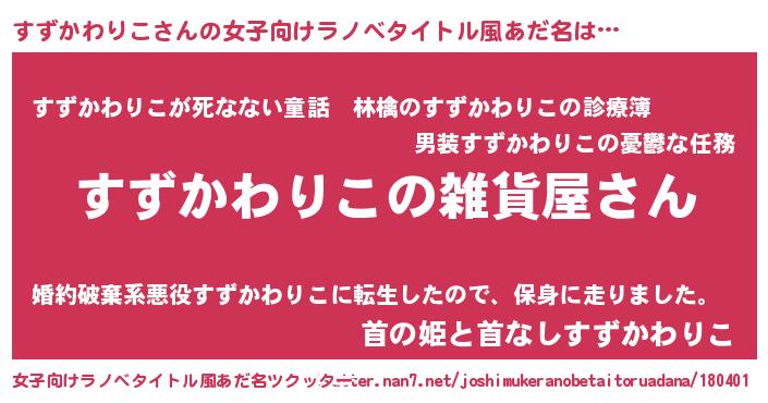| 男性向けラノベタイトル風あだ名 | 『やはりすずかわりこの青春ラブコメはまちがっている 』 |