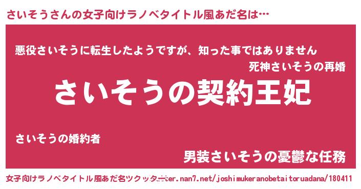 | 胡散臭い通販商品みたいなあだ名 | 『来世でも幸せになれる健康食品…その名も「さいそう」』 |