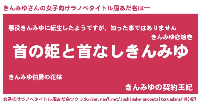 | 意味不明あだ名 | 『住所不定無職きんみゆ(98歳)』 |