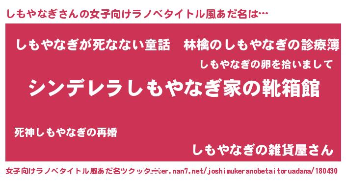 | 意味不明あだ名 | 『住所不定無職しもやなぎ(10歳)』 |