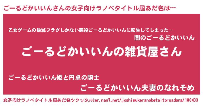 | 男性向けラノベタイトル風あだ名 | 『やはりごーるどかいいんの青春ラブコメはまちがっている 』 |