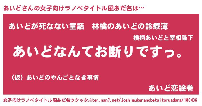 | 意味不明あだ名 | 『自称あいど』『住所不定無職あいど(91歳)』 |
