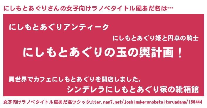 | 胡散臭い通販商品みたいなあだ名 | 『芸能人もオススメする高麗人参…その名も「にしもとあぐり」』 |