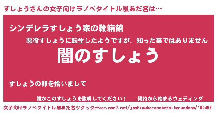 | 男性向けラノベタイトル風あだ名 | 『Re:すしょうから始める異世界生活』 |