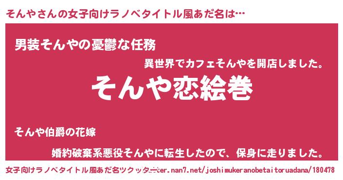 | 男性向けラノベタイトル風あだ名 | 『ノーゲーム・ノーソンヤ』 |