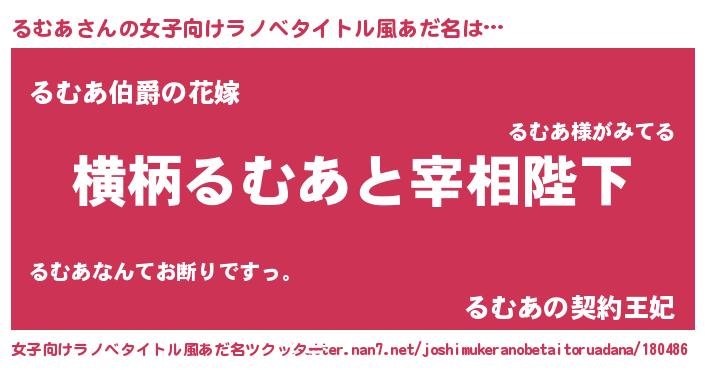 | 男性向けラノベタイトル風あだ名 | 『るむあに滅ぼされるだけの簡単なお仕事です』 |