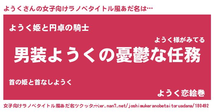 | ヒーロー風カッコイイあだ名 | 『スーパーヨウク』『愛の使者ようく』 |