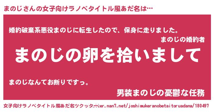 | 意味不明あだ名 | 『とにかく怪しいまのじ』『自称まのじ』 |