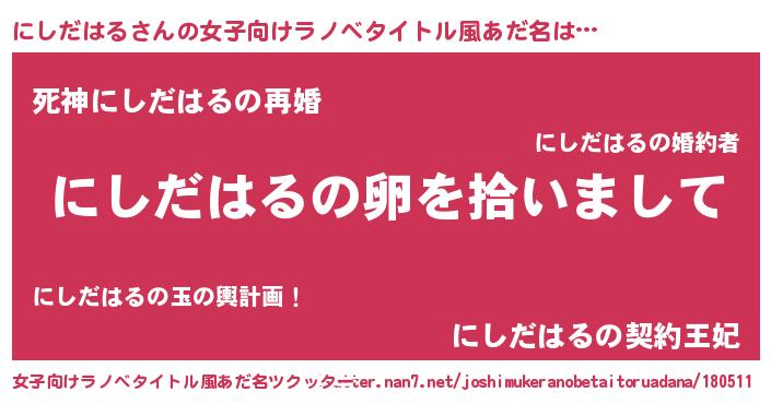 | 男性向けラノベタイトル風あだ名 | 『ダンジョンににしだはるを求めるのは間違っているだろうか』 |