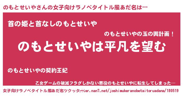 | 男性向けラノベタイトル風あだ名 | 『ダンジョンにのもとせいやを求めるのは間違っているだろうか』 |