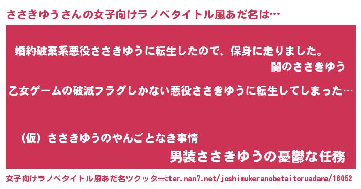 | 意味不明あだ名 | 『住所不定無職ささきゆう(13歳)』 |