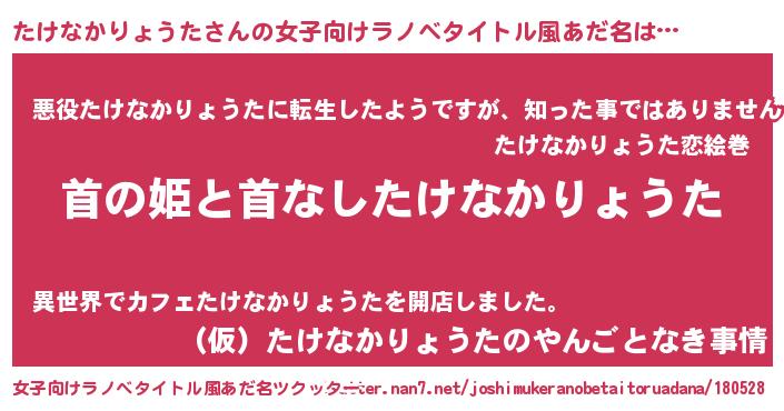 | 男性向けラノベタイトル風あだ名 | 『はたらくたけなかりょうたさま!』 |