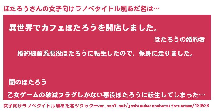 | 胡散臭い通販商品みたいなあだ名 | 『絶対に幸福をもたらす健康食品…その名も「ほたろう」』 |