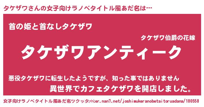 | 意味不明あだ名 | 『自称タケザワ』『永久保存タケザワ』 |