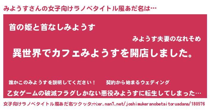 | ヘコむあだ名 | 『みようす(小並感)』『みよにー』 |
