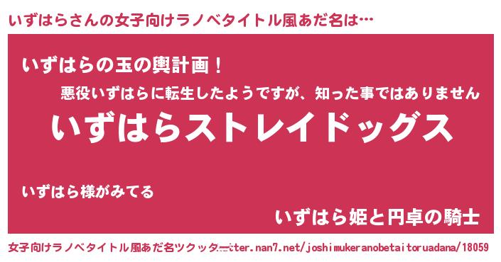 | 男性向けラノベタイトル風あだ名 | 『Re:いずはらから始める異世界生活』 |