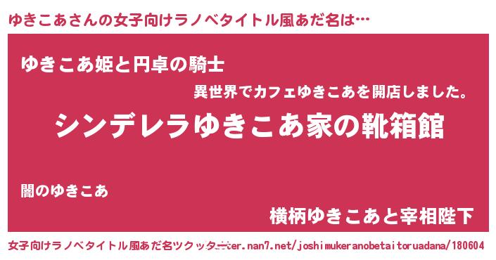 男性向けラノベタイトル風あだ名 | 『緋弾のユキコア』『ゆきこあの憂鬱』 |