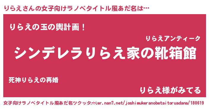 | 男性向けラノベタイトル風あだ名 | 『緋弾のリラエ』『魔法科高校のりらえ』 |