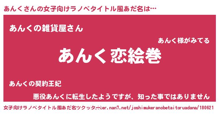 | ヘコむあだ名 | 『豆乳』『あんぷりん』『あんにー』 |