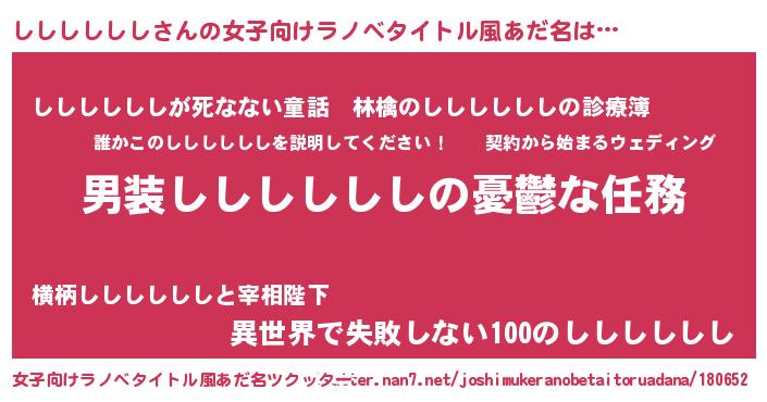 | 胡散臭い通販商品みたいなあだ名 | 『あなたにだけ特別に提供する限定10本のレアな日本酒…その名も「しししししし」』 |