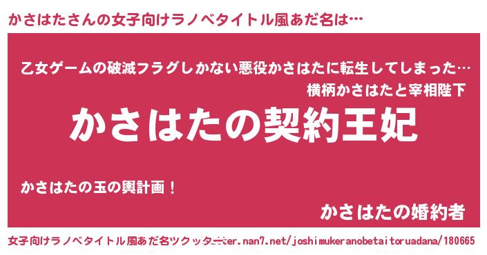 | 男性向けラノベタイトル風あだ名 | 『誰もが恐れるあのかさはたが、ぼくの専属メイドになるようです。』 |