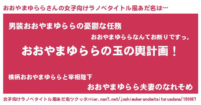 | ヘコむあだ名 | 『おおっぺ』『おおやまゆらら(爆)』 |
