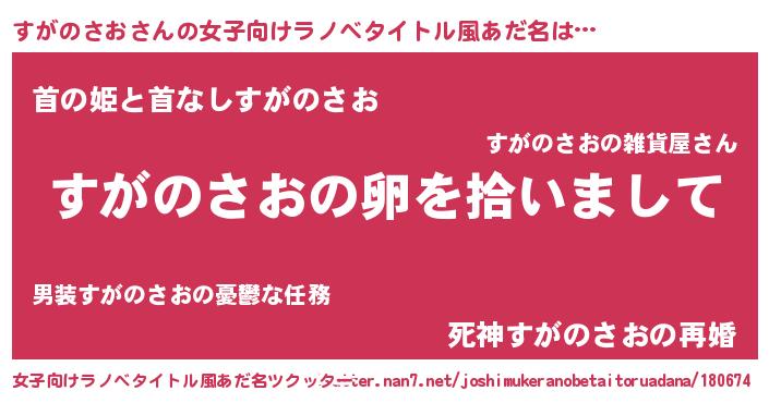 | 胡散臭い通販商品みたいなあだ名 | 『伝統あるネックレス…その名も「すがのさお」』 |
