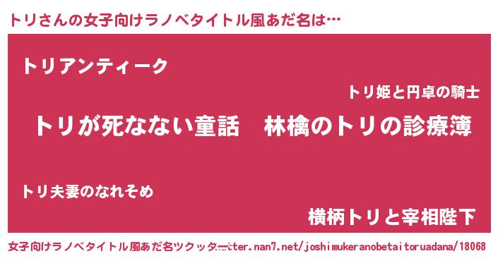 | 男性向けラノベタイトル風あだ名 | 『魔弾の王とトリ』『魔法科高校のトリ』 |