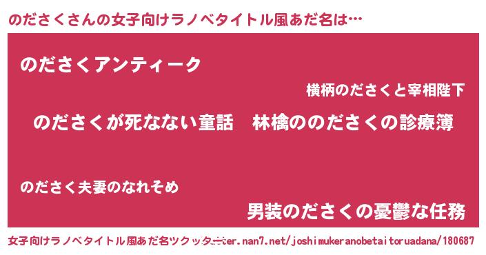 | 胡散臭い通販商品みたいなあだ名 | 『ハリウッド女優が絶賛した世界で10本だけ現存している希少なブランデー…その名も「のださく」』 |
