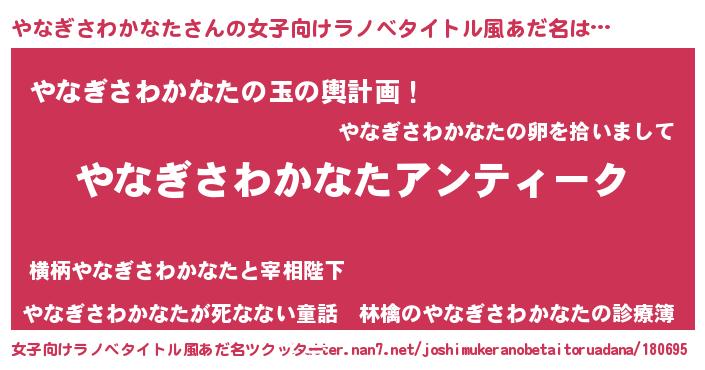 | 意味不明あだ名 | 『自称やなぎさわかなた』 |