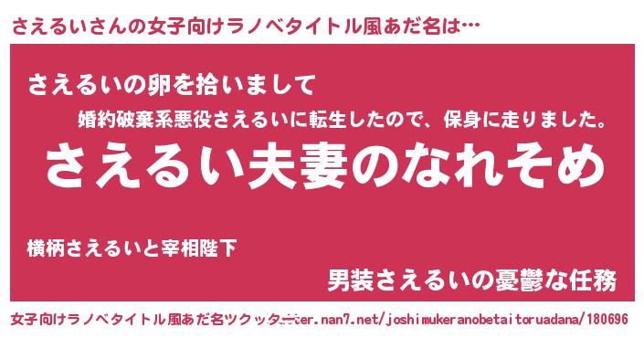 | 料理風あだ名 | 『さえるいのトマト煮』『さえるいごはん』 |