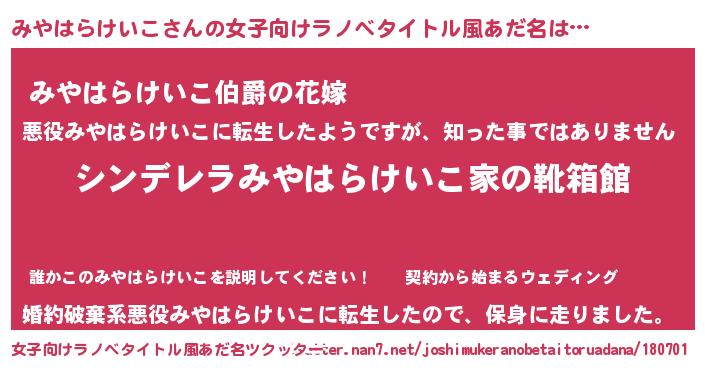 | 男性向けラノベタイトル風あだ名 | 『緋弾のミヤハラケイコ』 |