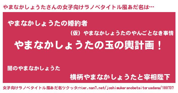 | 胡散臭い通販商品みたいなあだ名 | 『運命の人と巡り会える高級そうな壺…その名も「やまなかしょうた」』 |