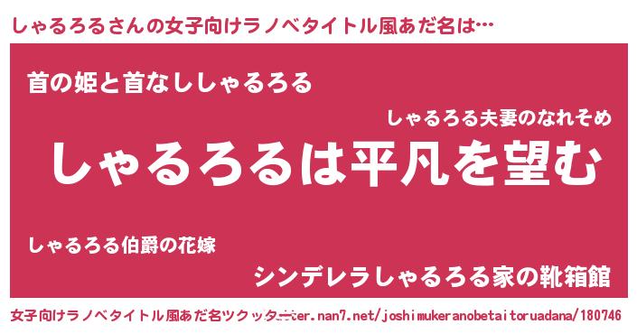 | 男性向けラノベタイトル風あだ名 | 『ダンジョンにしゃるろるを求めるのは間違っているだろうか』 |