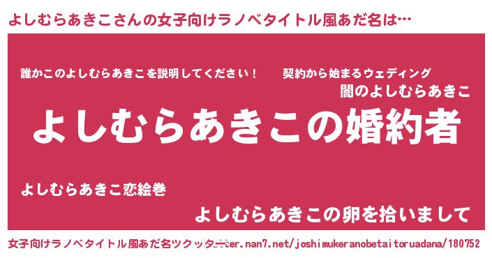 | ファンタジー風あだ名 | 『エターナルヨシムラアキコー』 |