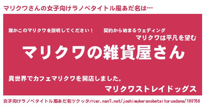 | 男性向けラノベタイトル風あだ名 | 『やはりマリクワの青春ラブコメはまちがっている 』 |