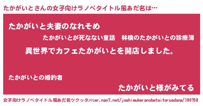 | ヘコむあだ名 | 『たかがいと(苦笑)』『たかを』 |