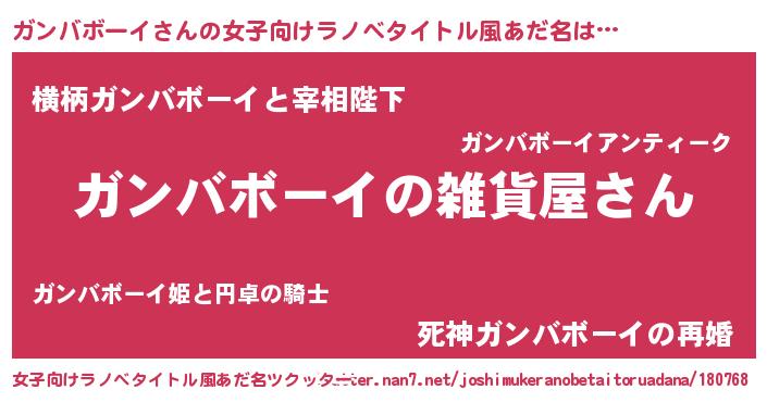 | 男性向けラノベタイトル風あだ名 | 『やはりガンバボーイの青春ラブコメはまちがっている 』 |